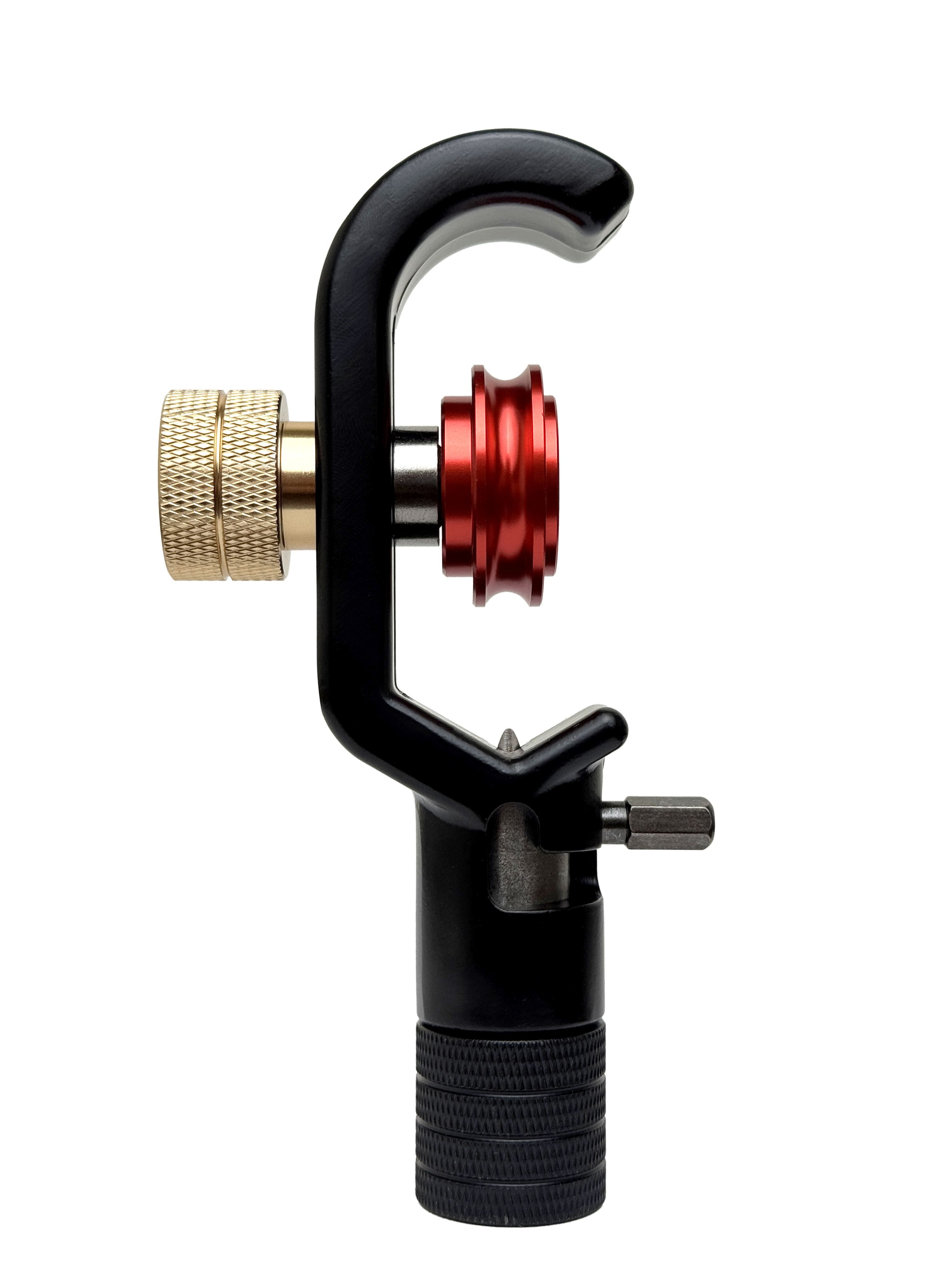 - Гайка-фиксатор устанавливает колесо подачи на заданном значении диаметра кабеля