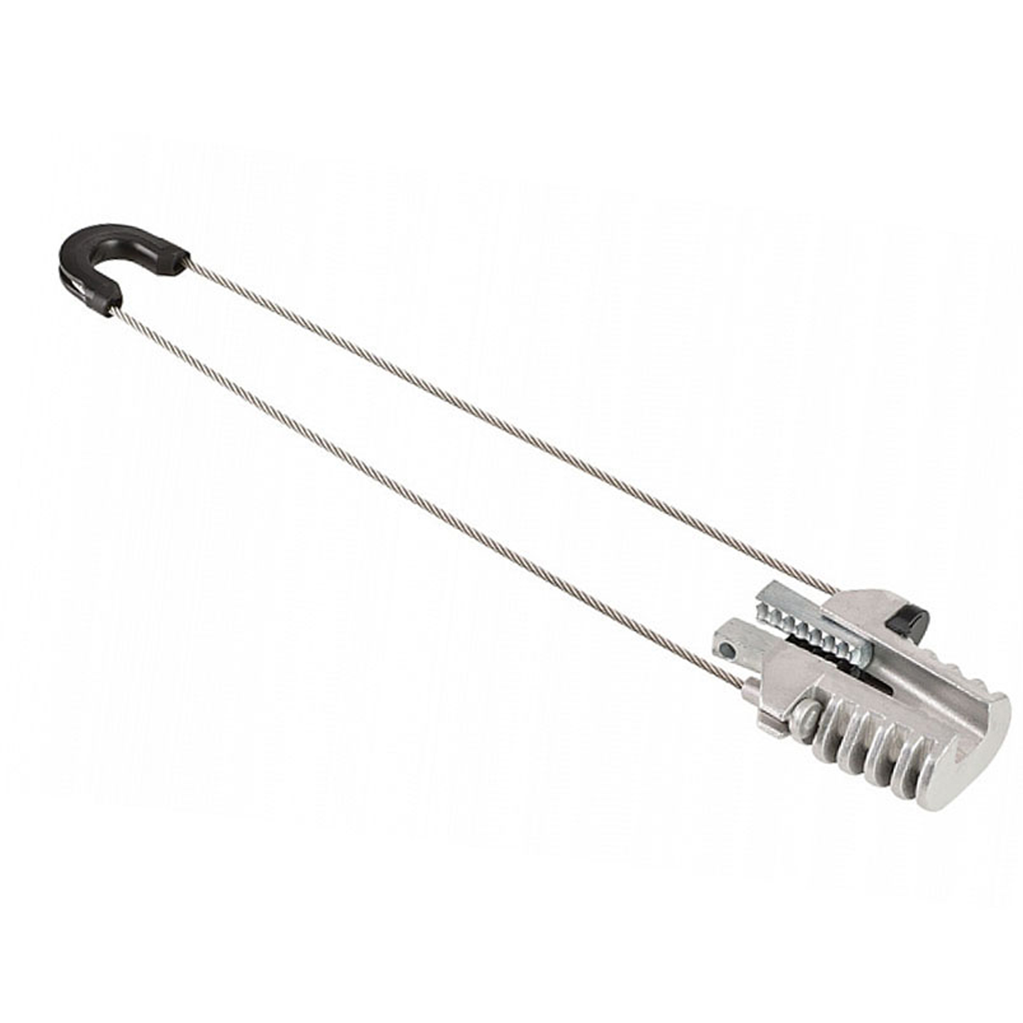 Корпус зажима выполнен из крепкого алюминиевого сплава с высокой степенью устойчивости к механическим и погодно-климатическим воздействиям, клинья — из цинкового сплава.Позволяет просто и быстро закрепить кабель за вынесенный стальной трос.
