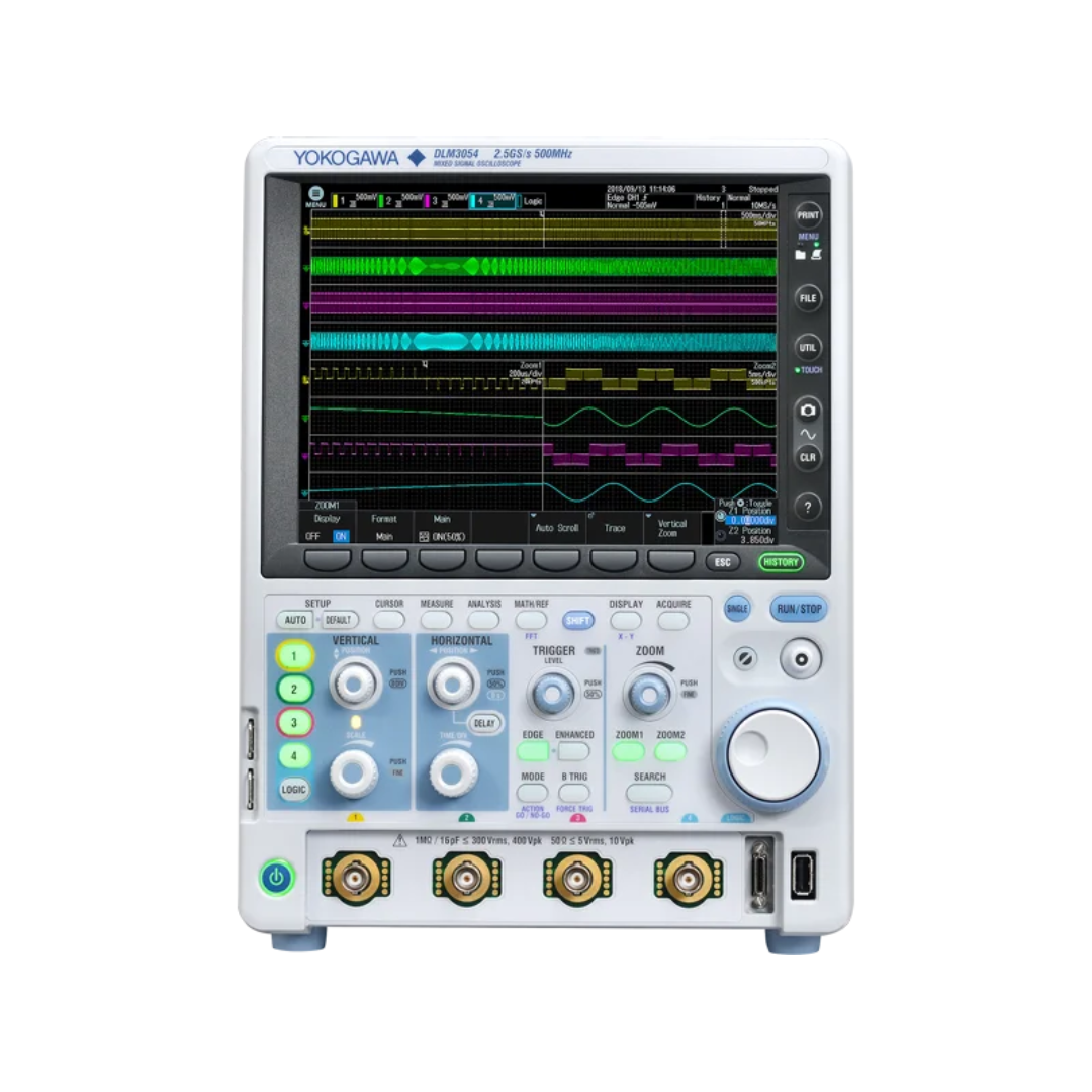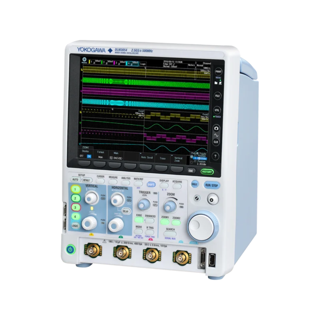 Принцип действия осциллографов основан на аналого-цифровом преобразовании входного сигнала с последующей его цифровой обработкой и индикацией выборки сигнала на экране прибора. Осциллографы обеспечивают визуальное наблюдение, запоминание в цифровой форме и измерение амплитудно-временных параметров сигналов по 2 и 4 независимым каналам. DLM3000 первый в своем классе получил функцию перестраиваемого осциллографа смешанных сигналов (flexible MSO), которая позволяет преобразовать один аналоговый канал в восьмиразрядный логический анализатор.Особенности: