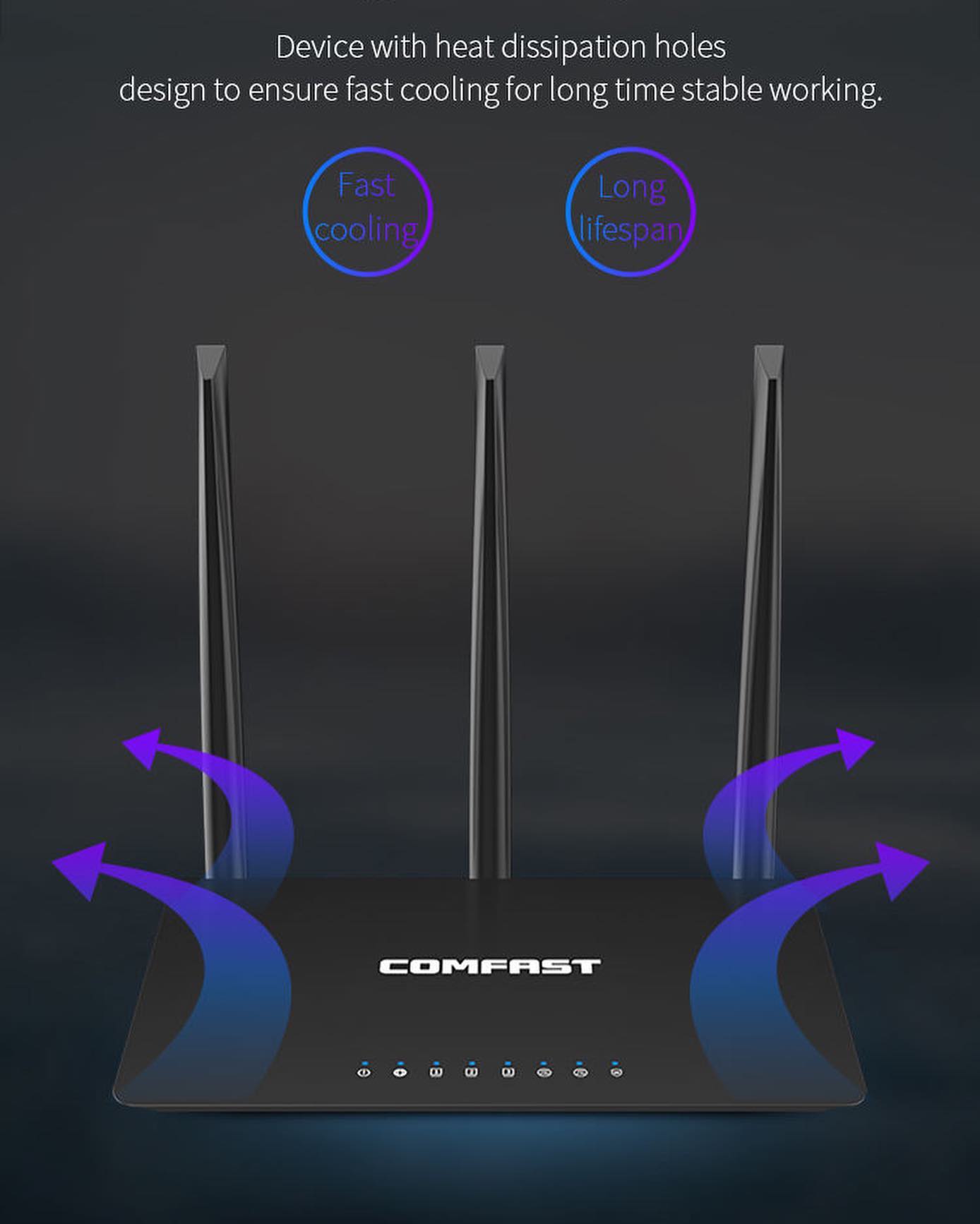 COMFAST CF-WR619AC работает в диапазонах 2,4 ГГц и 5 ГГц, обеспечивая превосходное качество беспроводного соединения, а также возможность выбора между двумя частотами под ваши нужды. Простые задачи, такие как e-mail или просмотр веб-страниц, могут выполняться на 2,4 ГГц со скоростью до 300 Мбит/с, в то время, как ресурсоёмкие задачи, такие как онлайн игры и просмотр HD-видео, могут выполняться на 5 ГГц со скоростью до 867 Мбит/с.