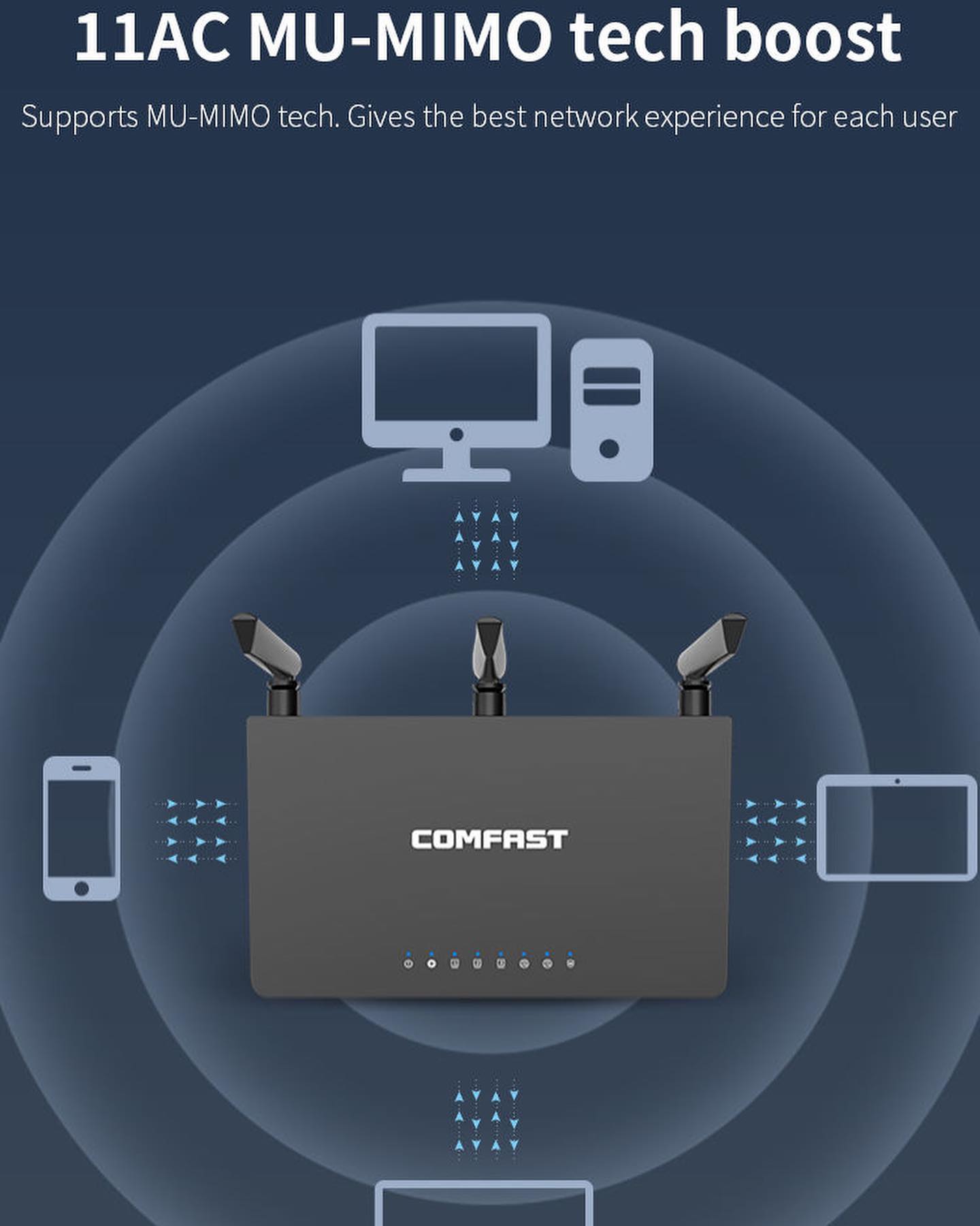 Wi-Fi Гигабитный маршрутизатор COMFAST CF-WR619AC поддерживает следующее поколение Wi-Fi 802.11ac