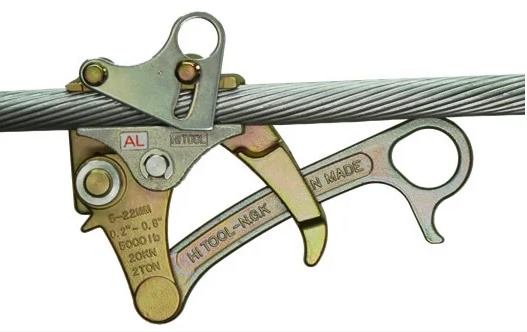 Монтажный Зажим-захват (лягушка) ОК-MC-16-250 20кН применяется при регулировке стрелы провеса на линиях СИП и ВОЛС путем захвата за несущую жилу. Могут использоваться при работах с оптоволоконным или электрическим кабелем. Рычажное устройство преобразует усилие тяги в усилие захвата.