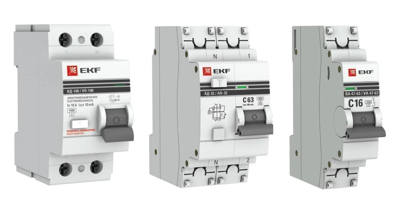 В линейку модульной автоматики EKF входит широкий ряд моделей выключателей дифференциального тока (УЗО) и автоматических выключателей дифференциального тока (АВДТ). Функция УЗО с номинальными отключающими дифференциальными токами 10 мА и 30 мА – защита людей от поражения электрическим током при случайном прикосновении к открытым проводящим частям электроустановки, а также защита электрооборудования при повреждении изоляции проводников. Устройства защитного отключения функциями защиты сети от короткого замыкания и нагрузки, превышающей допустимую, не обладают, поэтому обязательно применяются в паре «автомат – УЗО». УЗО на большие дифференциальные токи (от ста миллиампер) обеспечивают пожарную безопасность, препятствуя воспламенению проводки из-за длительного протекания тока утечки. Дифференциальный автоматический выключатель — аппарат, выполняющий задачи УЗО и автомата. Он ограничивает ток утечки, исключая ситуацию, при которой человек может получить удар электротоком, а также защищает электрооборудование от негативных последствий аварийных режимов работы сети, вызванных коротким замыканием или перегрузкой.