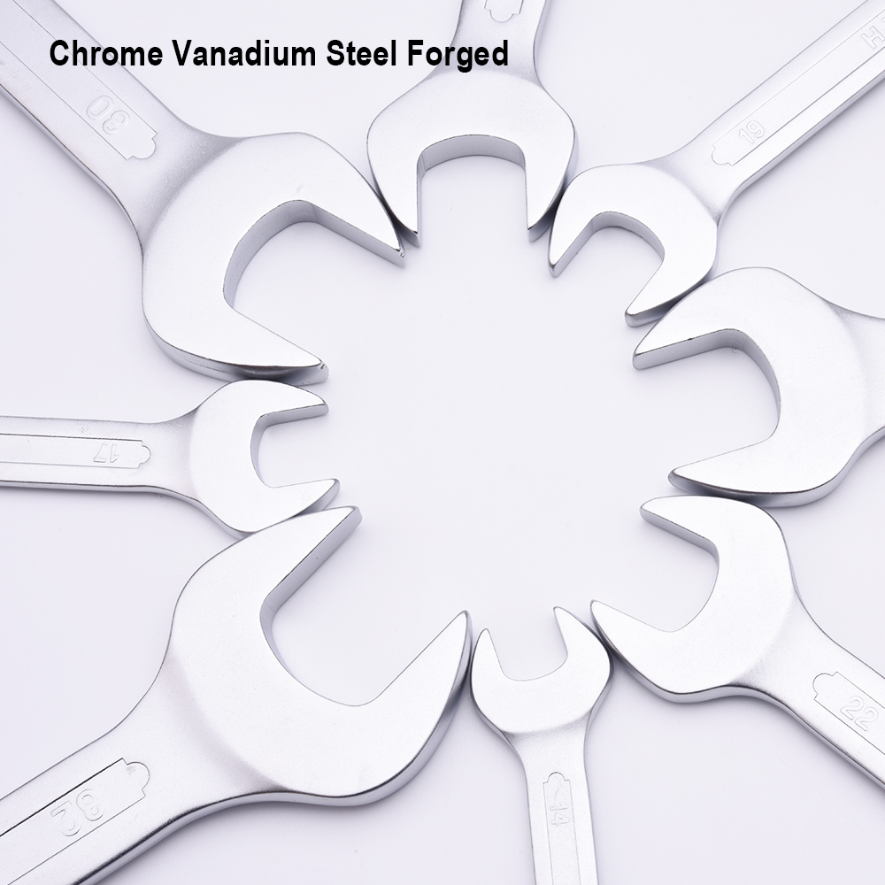 10 комбинированных гаечных ключей размеров: 8, 9, 10, 11, 12, 14, 15, 17, 19 и 22 ммМатериал: хромованадиевая сталь (CrV)