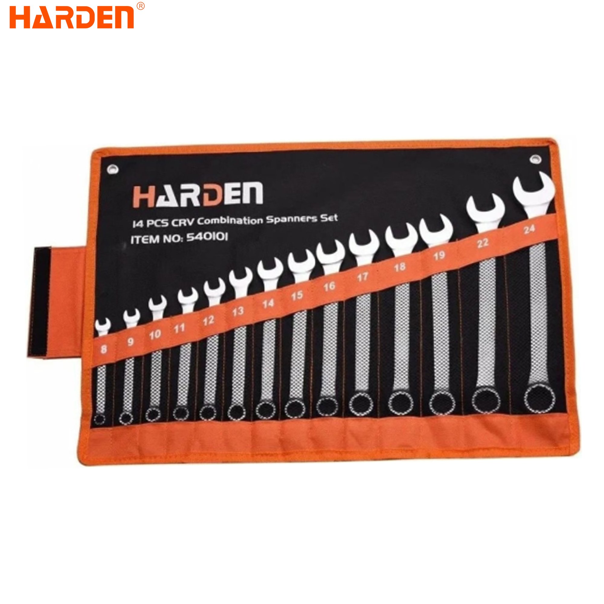 Набор комбинированных ключей HARDEN CRV, 8-24 мм, 14 предметов 540101 используется для работ с крепежом в процессе ремонтных и монтажных работ. Ключи выполнены из качественной хромованадиевой стали, благодаря чему обладают высокими эксплуатационными свойствами. Накидная часть позволяет прикладывать большие усилия за счет увеличенной площади соприкосновения. Рожковая часть удобна при работе в труднодоступных местах, где элемент крепления плотно прилегает к стенке или другой плоскости.Размеры: 8,9,10,11,12,13,14,15,16,17,18,19,22,24mm