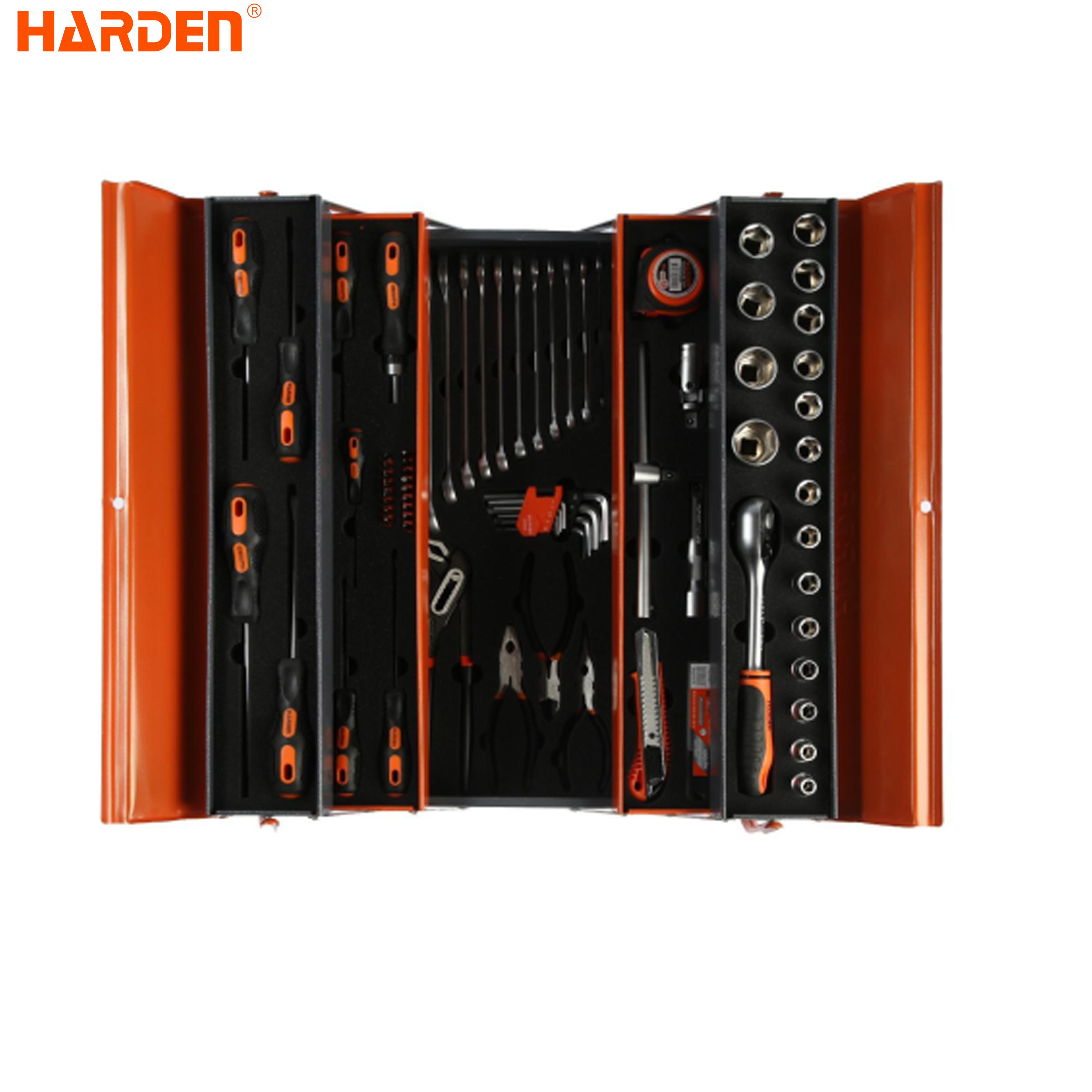 Набор инструментов HARDEN 77 предметов Арт. 510777 представляет собой универсальный комплект инструмента для различных ремонтных и монтажных работ. Подходит для профессионального и бытового применения. Инструменты выполнены из качественной и прочной стали, благодаря чему отличаются надежностью и долговечностью. Набор поставляется в металлическом кейсе для удобного хранения и транспортировки. Благодаря раскладной конструкции в кейсе легко найти нужный инструмент, а также распределить содержимое по своему усмотрению.Комплектация: