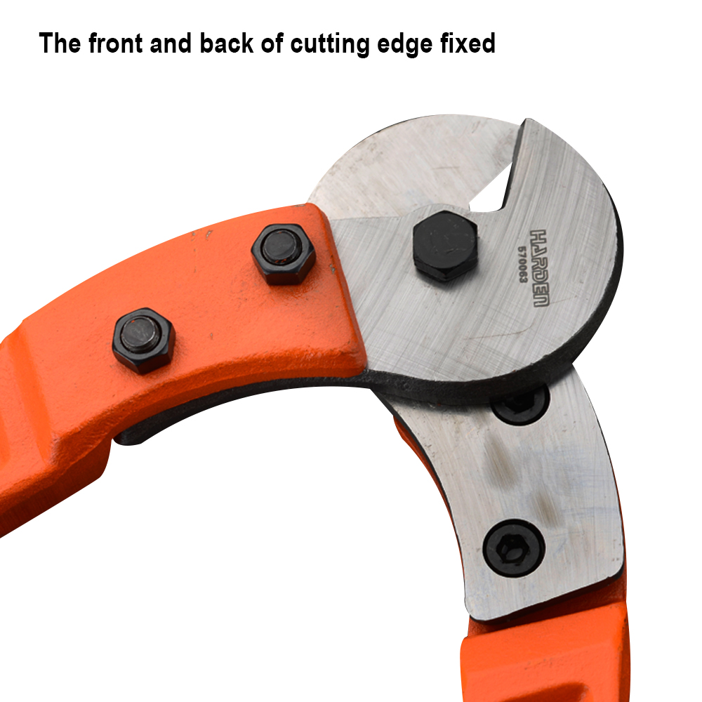 Тросорез ручной Harden 36" (Арт. 570065) — это мощный инструмент профессионального класса, предназначенный для резки стальных и нержавеющих тросов большого диаметра. Благодаря удлинённым рычагам (900 мм) и высокопрочным кованым лезвиям из стали T8 с термообработкой, инструмент позволяет легко справляться с тяжёлыми задачами без излишних усилий. Широко используется в строительстве, судостроении, промышленном монтаже, электросетях и других отраслях.Особенности: