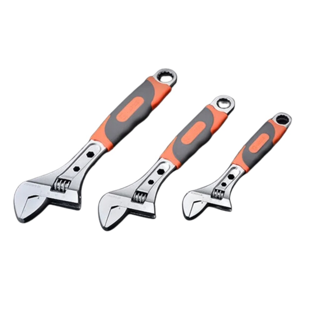 •Высококачественные материалы: Ключ изготовлен из углеродистой стали с хромированным покрытием, что обеспечивает высокую прочность, износостойкость и устойчивость к коррозии.•Удобная ручка: Мягкое покрытие ручки улучшает сцепление, предотвращает скольжение и обеспечивает комфорт при работе.•Прецизионный механизм регулировки: Точный четырёхколёсный червячный механизм обеспечивает лёгкость и плавность регулировки зева ключа.