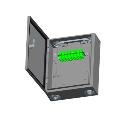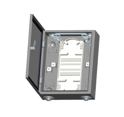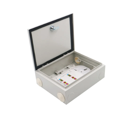 Бокс отличается компактным и эргономичным дизайном, габариты составляют 200х250х88 мм. Подходит для быстрого монтажа без использования специальных инструментов. Он рассчитан на подключение до 12 входящих кабелей и до 24 выходящих (Drop-cable).На корпусе имеются 8 отверстий, из которых 4 предназначены для ввода закладной полиэтиленовой трубы диаметром 32 мм или абонентских кабелей. Передняя панель с замком предотвращает несанкционированный доступ.