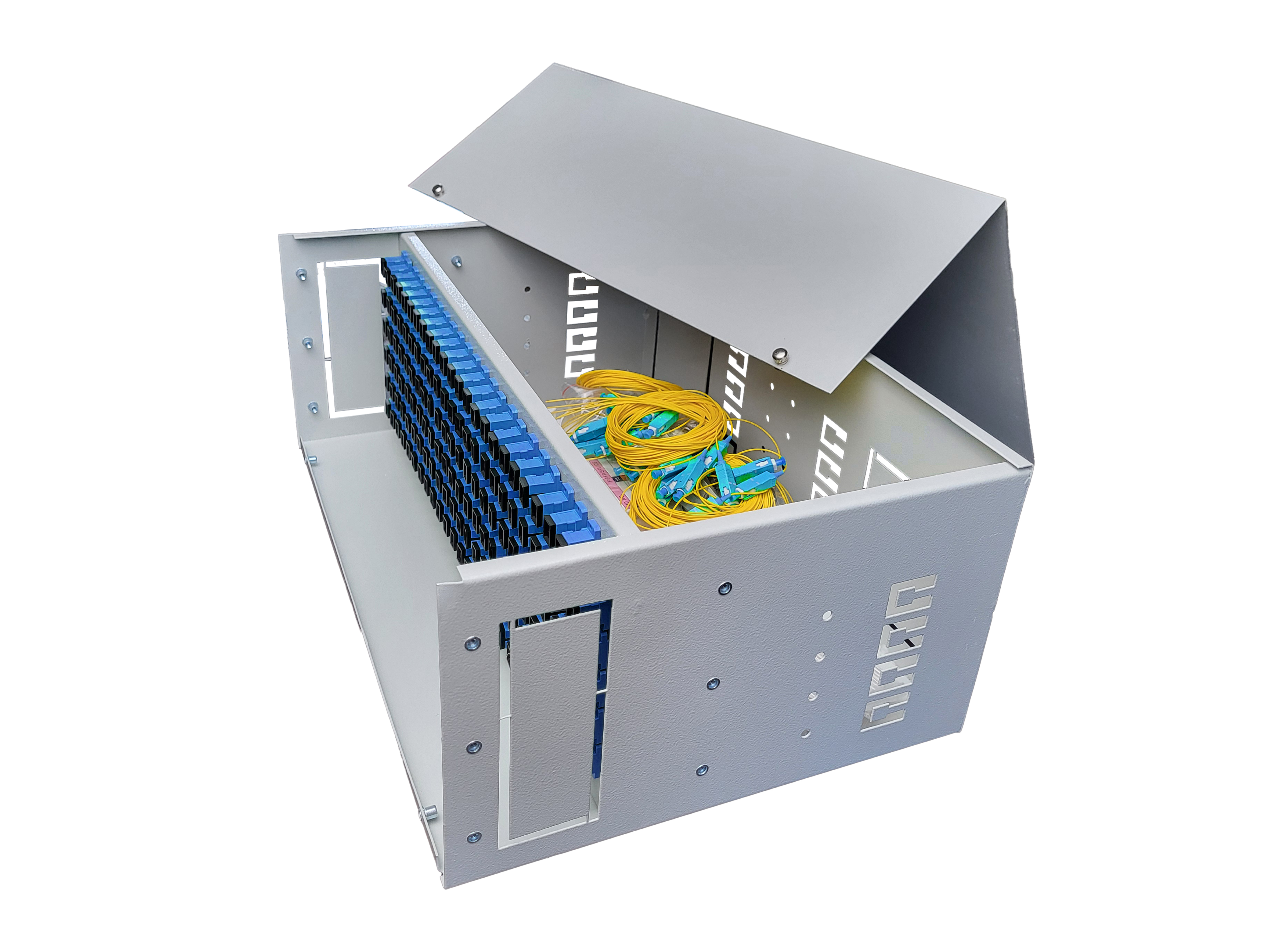 Оптическая полка ОК-FDF-4U-144SC представляет собой модульный конструктив емкостью до 144 оптических порта и высотой 4U с возможностью установки в 19" стандарт. Полка служит для размещения сростков оптических кабелей с оптическими соединителями (розетками), а также для размещения оптических сплиттеров.Применение:
