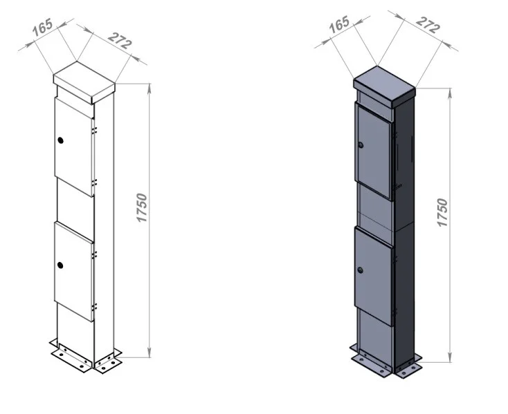 Стойка распределения оптики СРОу-02 уличного исполнения предназначена для построения сетей FTTH в коттеджном и частном секторе без выхода на воздушные линии связи. СРОу-02 рассчитана на подключение до 16-ти абонентов с возможностью установки оптических сплиттеров с различным корпусным исполнением. Стойка состоит из двух отсеков: 1. Отсек ввода и фиксации оптического кабеля. 2. Отсек коммутации оптического волокна и установки сплиттера. Нижний отсек служит для обеспечения удобной выкладки и фиксации приходящих оптических кабелей. Верхний отсек служит для соединения пигтейлов с кабелями, установки сплиттеров различной конструкции. На боковой стенке предусмотрен карман для установки корпусных сплиттеров, документации или прочего дополнительного оборудования. Стойка изготавливается в климатическом исполнении У категории 1 по ГОСТ 15150 и может эксплуатироваться на открытом воздухе при температурах от -45˚ С до +45˚ С. Для защиты от несанкционированного доступа в стойку установлены замки. В стойку имеется возможность ввести до 18-ти кабелей (2 кабеля для распределительной сети и 16 кабелей для подключения абонентов). Каждый кабель дополнительно фиксируется через затягивающийся герметичный ввод типа PG, обеспечивающий герметизацию уровня IP54/56. Стойка устанавливается на подготовленное бетонное основание и монтируется при помощи 6 анкерных болтов (не входят в комплект).Технические характеристики: